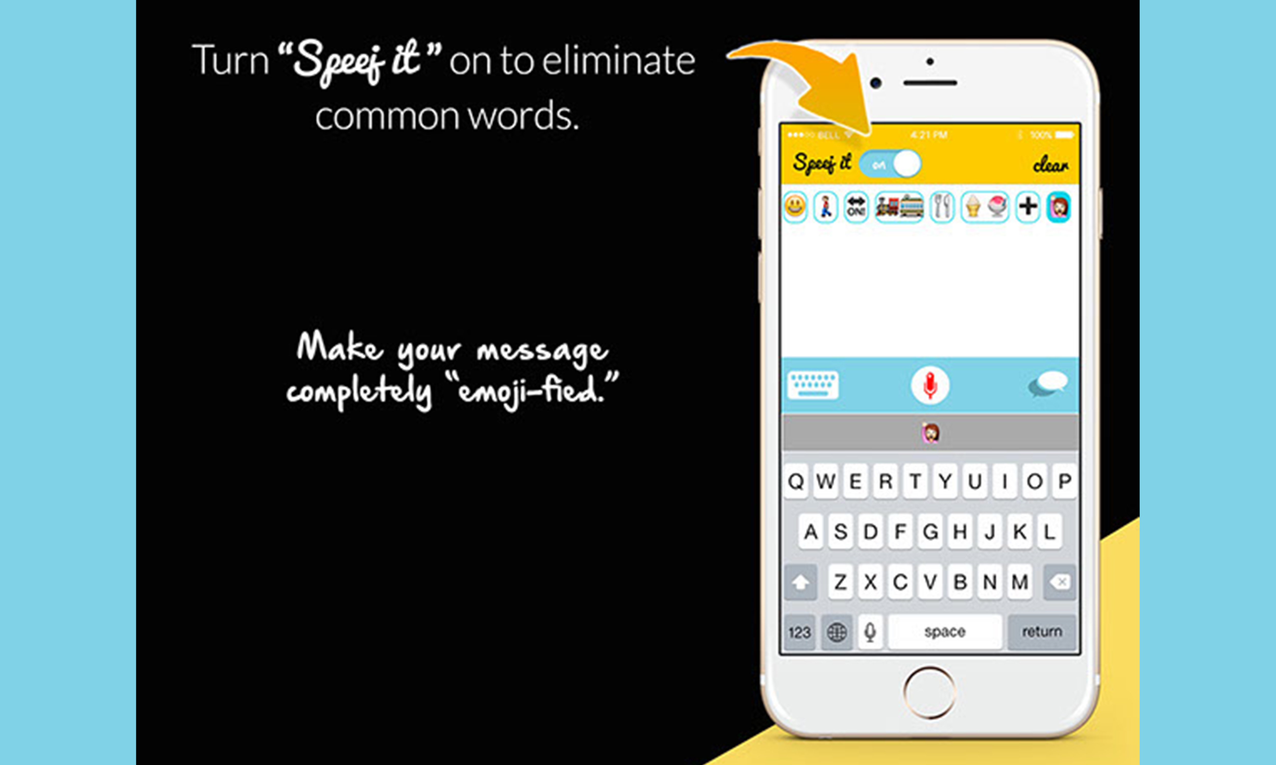 Speeji : Voice Activated Emoji Application Speeji is a revolutionary new app designed to enhance the way people text.